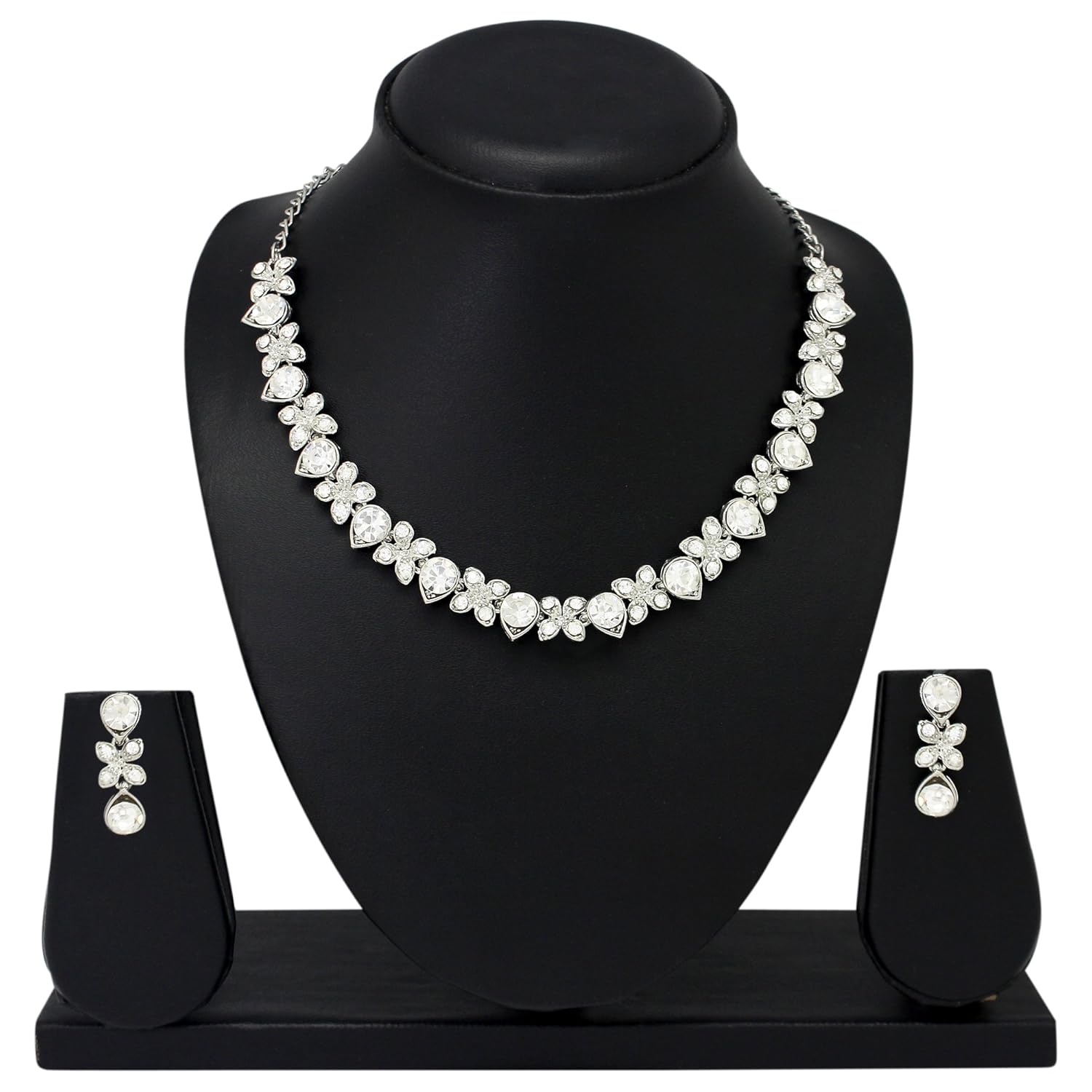 Atasi International Princess Style AD Crystals/Stones Necklace with Earrings Jewellery Set for Women/Girls – Wedding Jewelry/Party & Festival Accessories