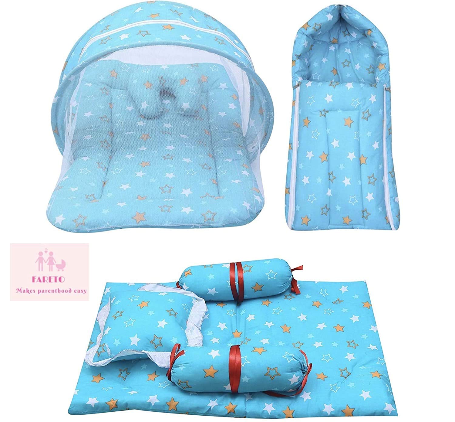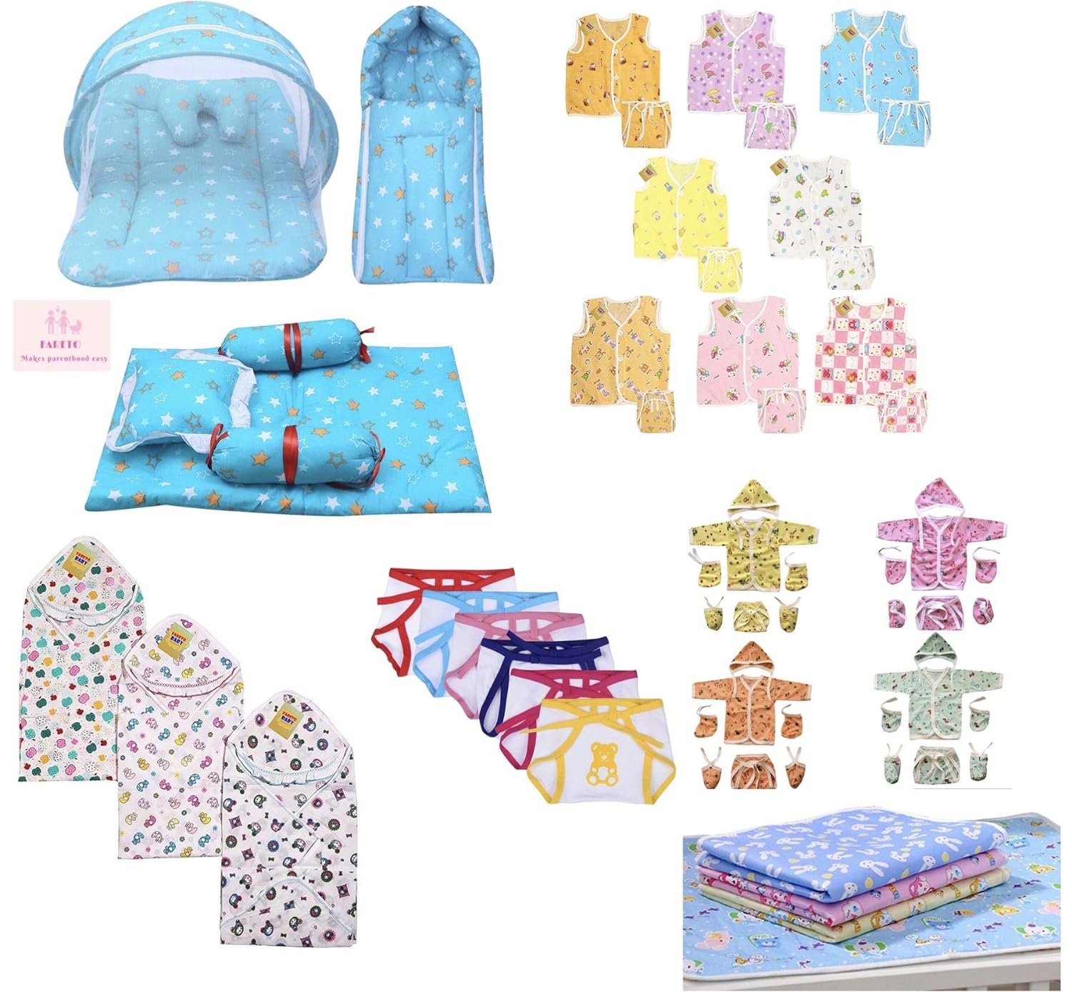 Infantbond 56 in 1 New Born Baby Complete Daily Items Combo(0-6 Months)(Star) (Blue Bedding Set for Baby Boy)(Assorted for remanining)