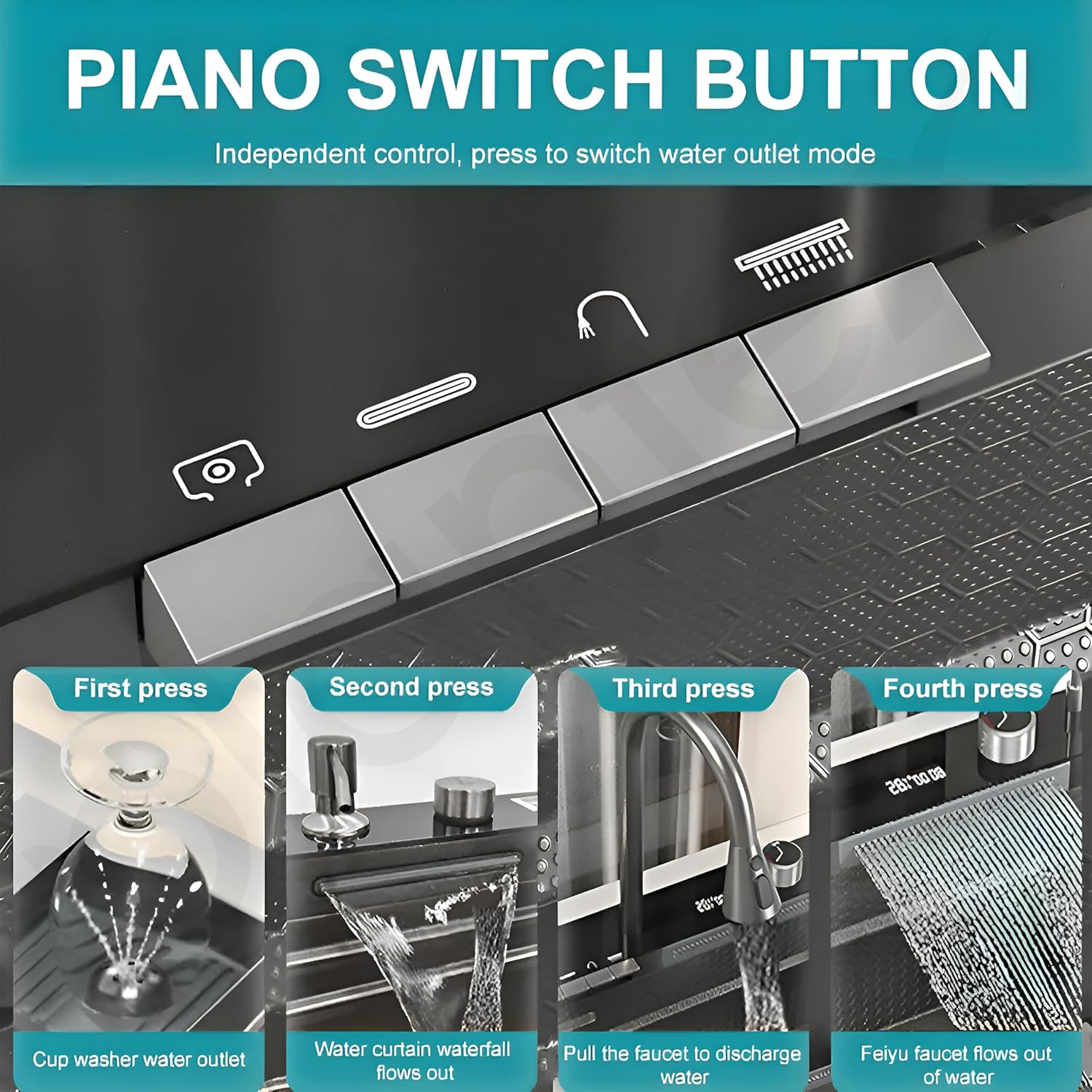 Plantex Smart Dual Waterfall Kitchen Sink/304 Grade Stainless Steel Sink with Digital Display LED Panel, Integrated Waterfalls & Pull Down Faucet – Multifunctional Sink (30×18 Inches – Nano Black)