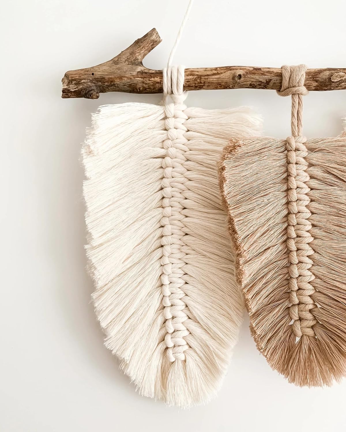 Azeem Mart boho macrame feather wall hanging, wall tapestry, home decoration, nursery decoration, leaves on the wall decor