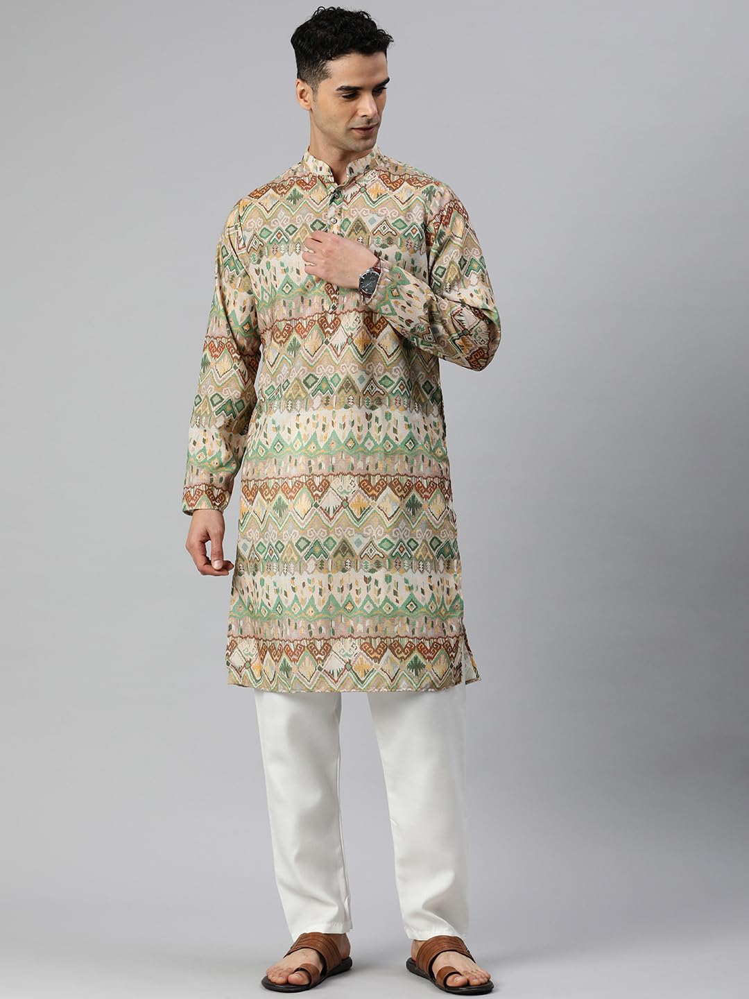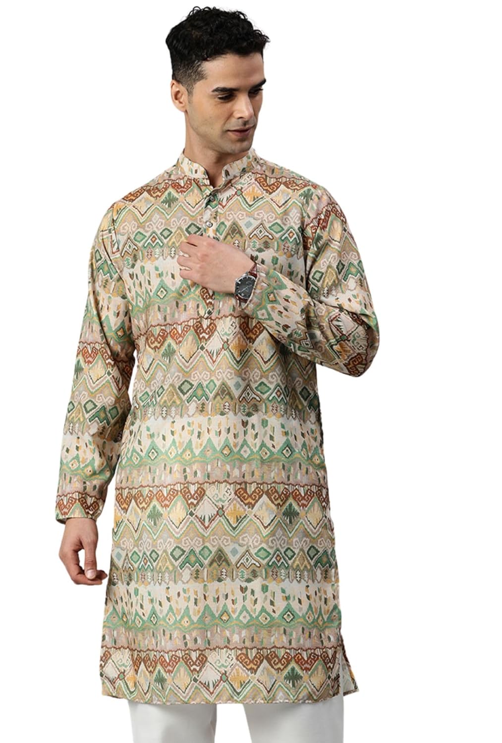 Majestic Man Cotton Blend Ethnic Motifs Abstract Printed Kurta for Men