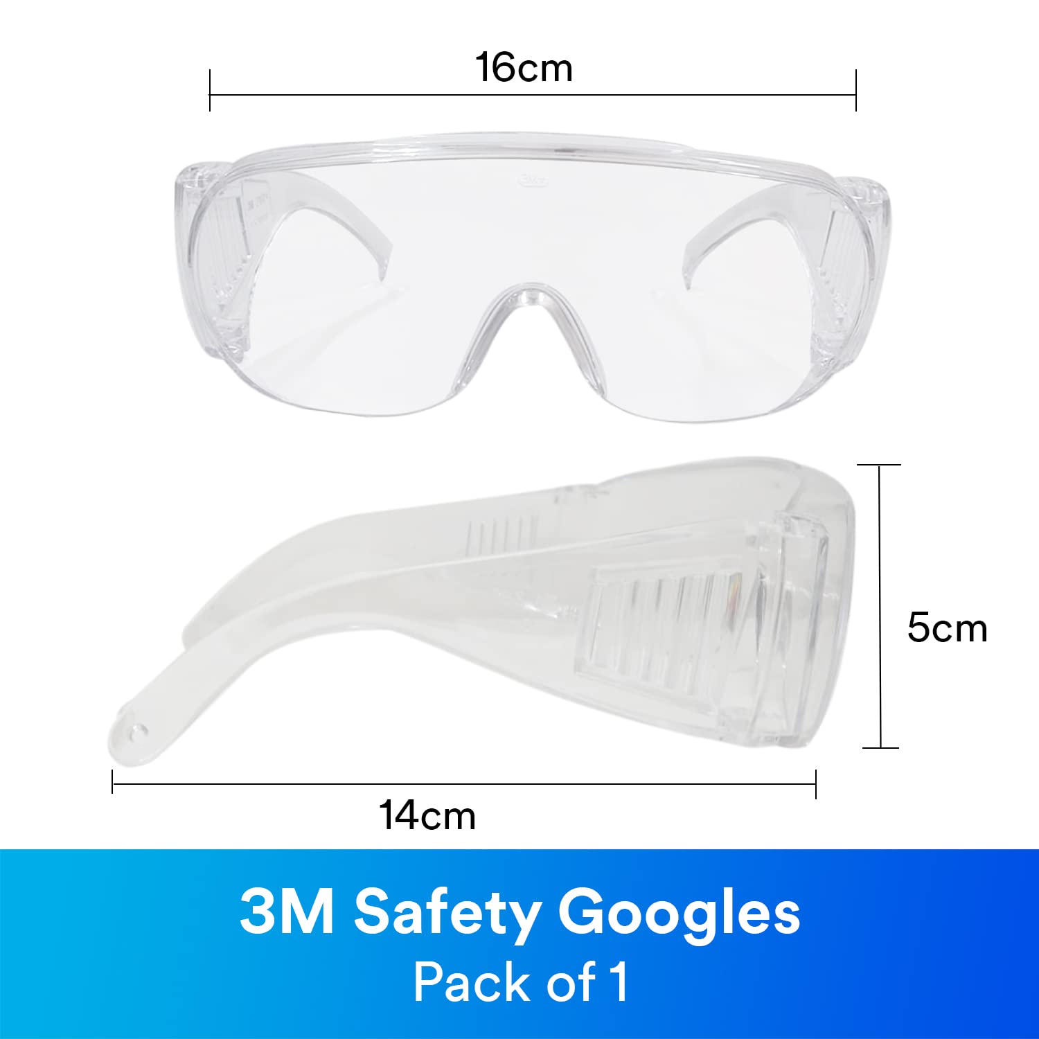3M 1611 Safety Goggles Hard Coat Eyewear, Over The Spectalar Eye Protector, Anti Pollution Goggles For Multipurpose Use In Riding Motorcycle, Construction, Clear Transparent Goggles (Pack of 1)