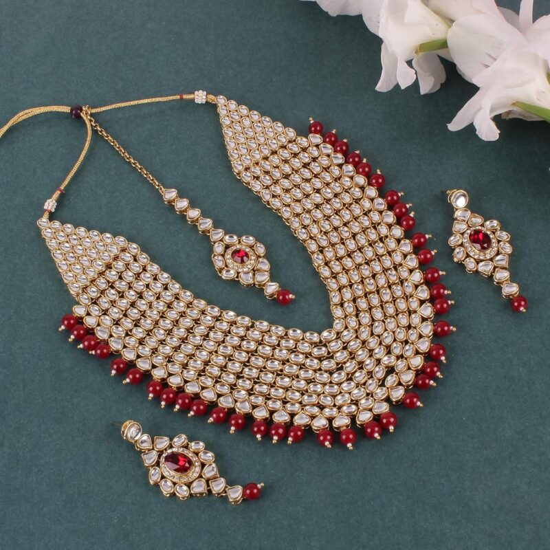 Shining Diva Fashion Latest Stylish Kundan Pearl Traditional Necklace Jewellery Set for Women