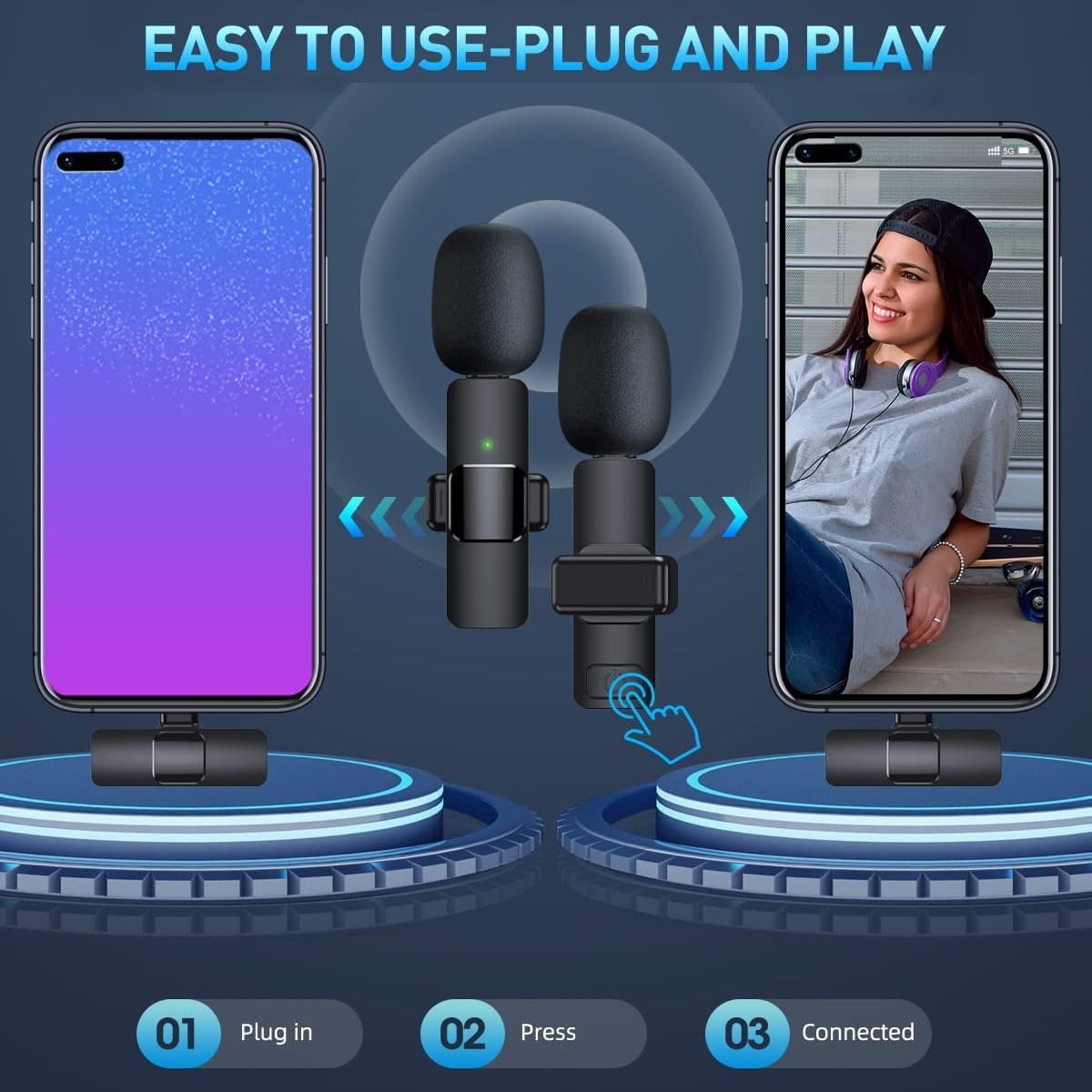 (Refurbished) Kanget Wireless Lavalier Microphone Mic System for YouTube Facebook Live Stream, Instagram Reels Video Recording Vlog for Type-C Android & iPhone