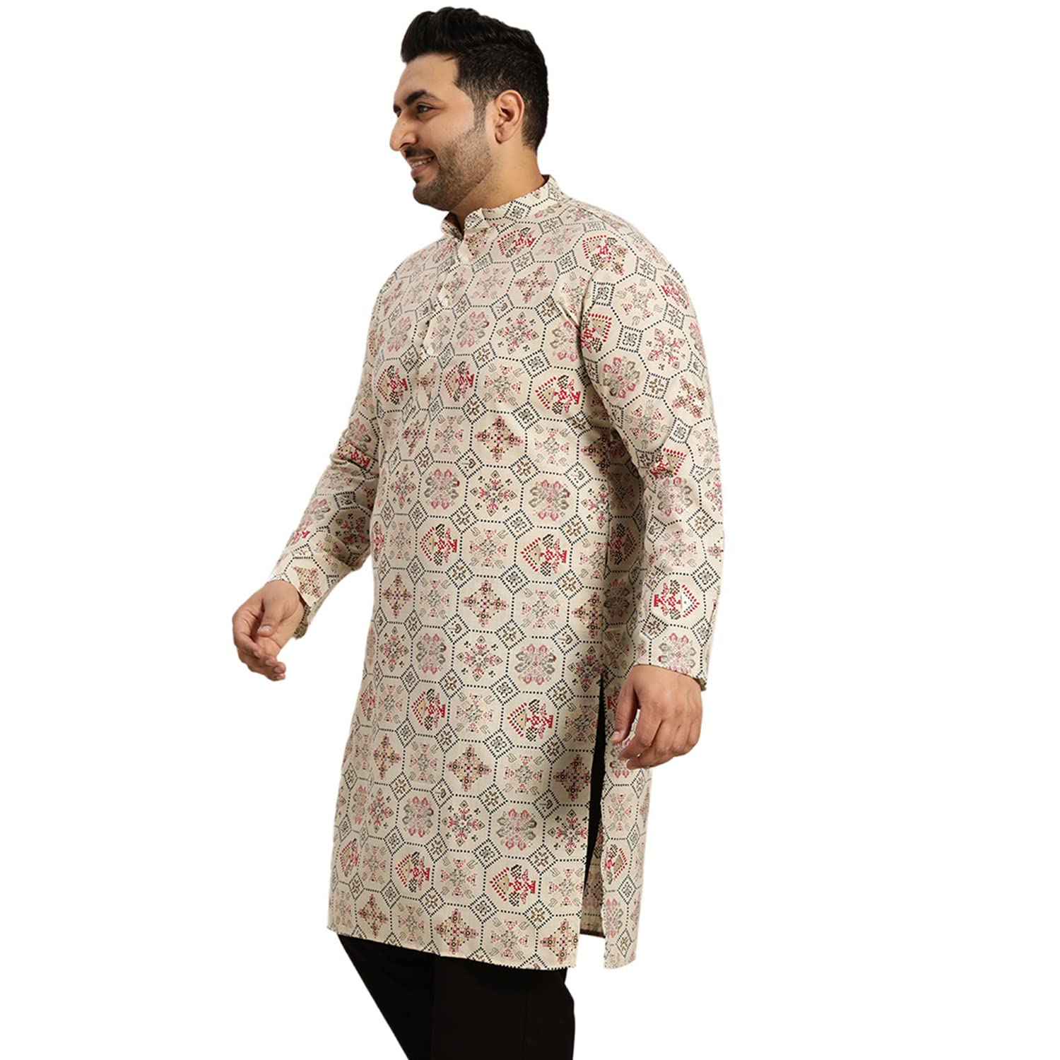 SOJANYA Plus (Since 1958), Men’s Cotton Linen Yellow and Multi Printed Only Long Kurta