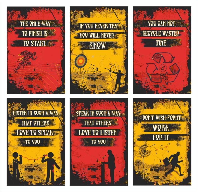 Vantagekart Start, Know, Time, Listen, Speak, Work Inspirational Motivational Self Adhesive Wall Posters for Home & Office Decor (Paper, 18×12-inch, Red) – Set of 6
