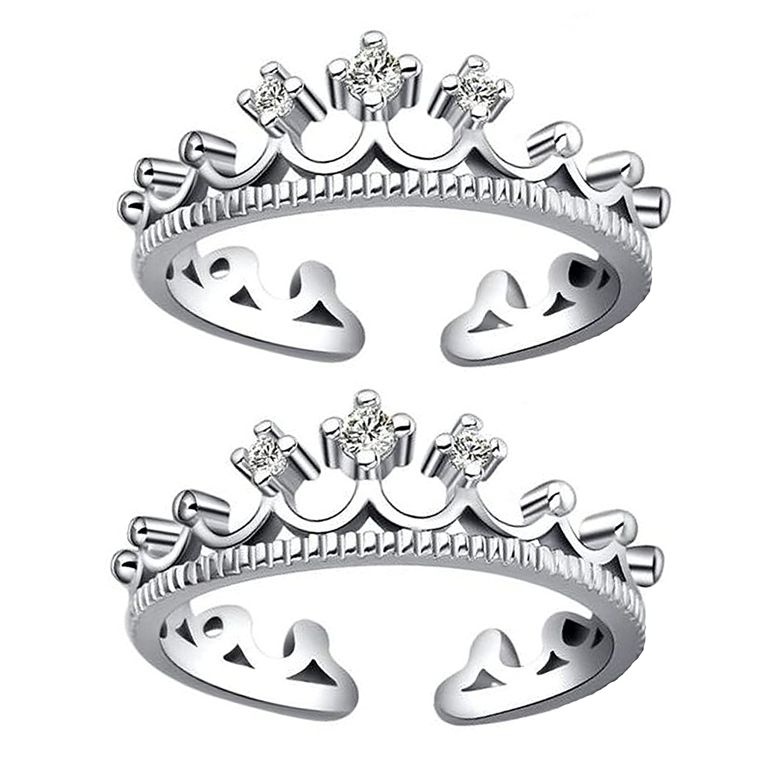 Om Jewells White Alloy Rhodium Designer Adjustable Toe Ring for Women – Combo of 3