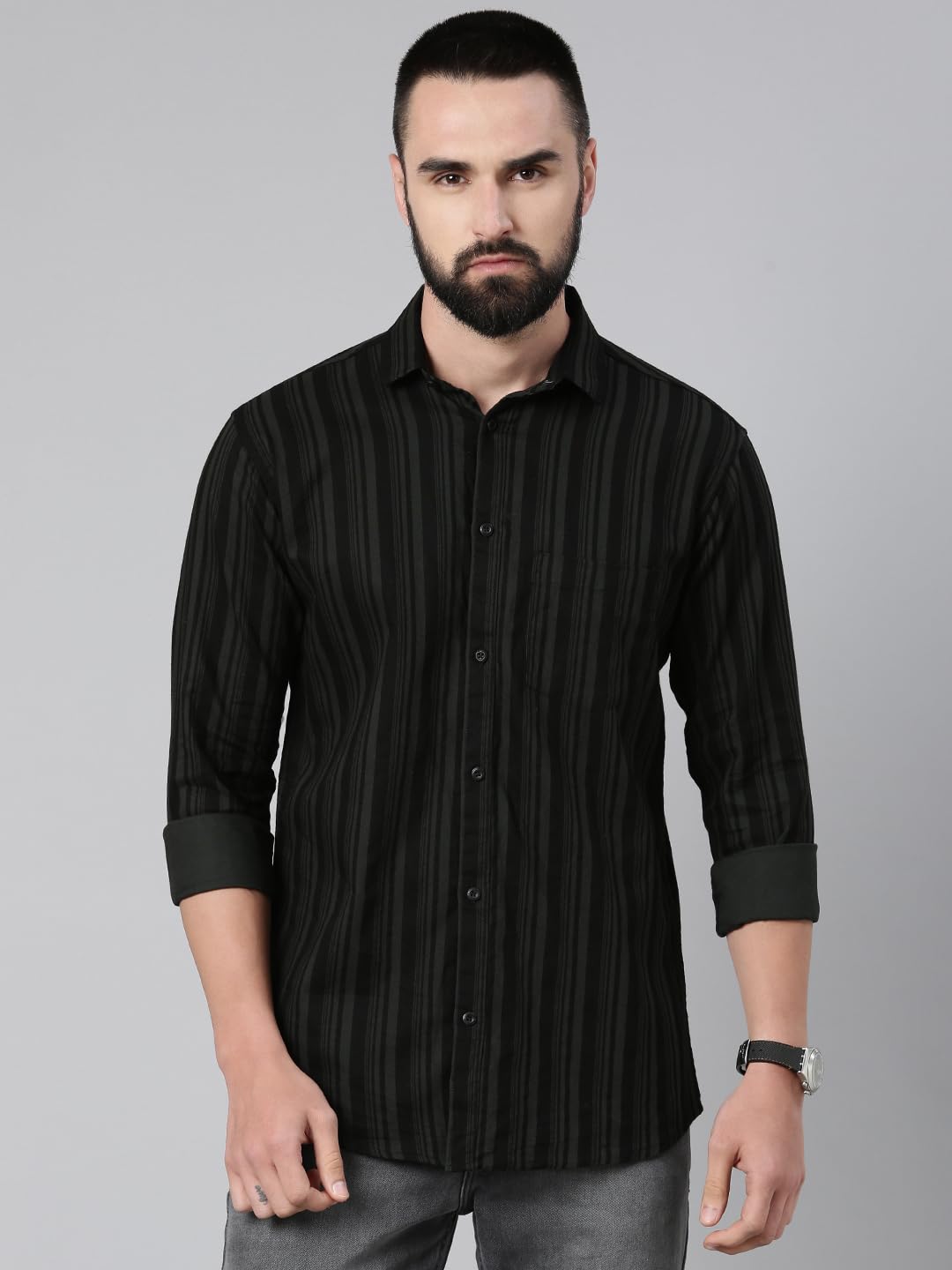 Majestic Man Men’s Standard Slim Fit Striped Pure Cotton Casual Shirt