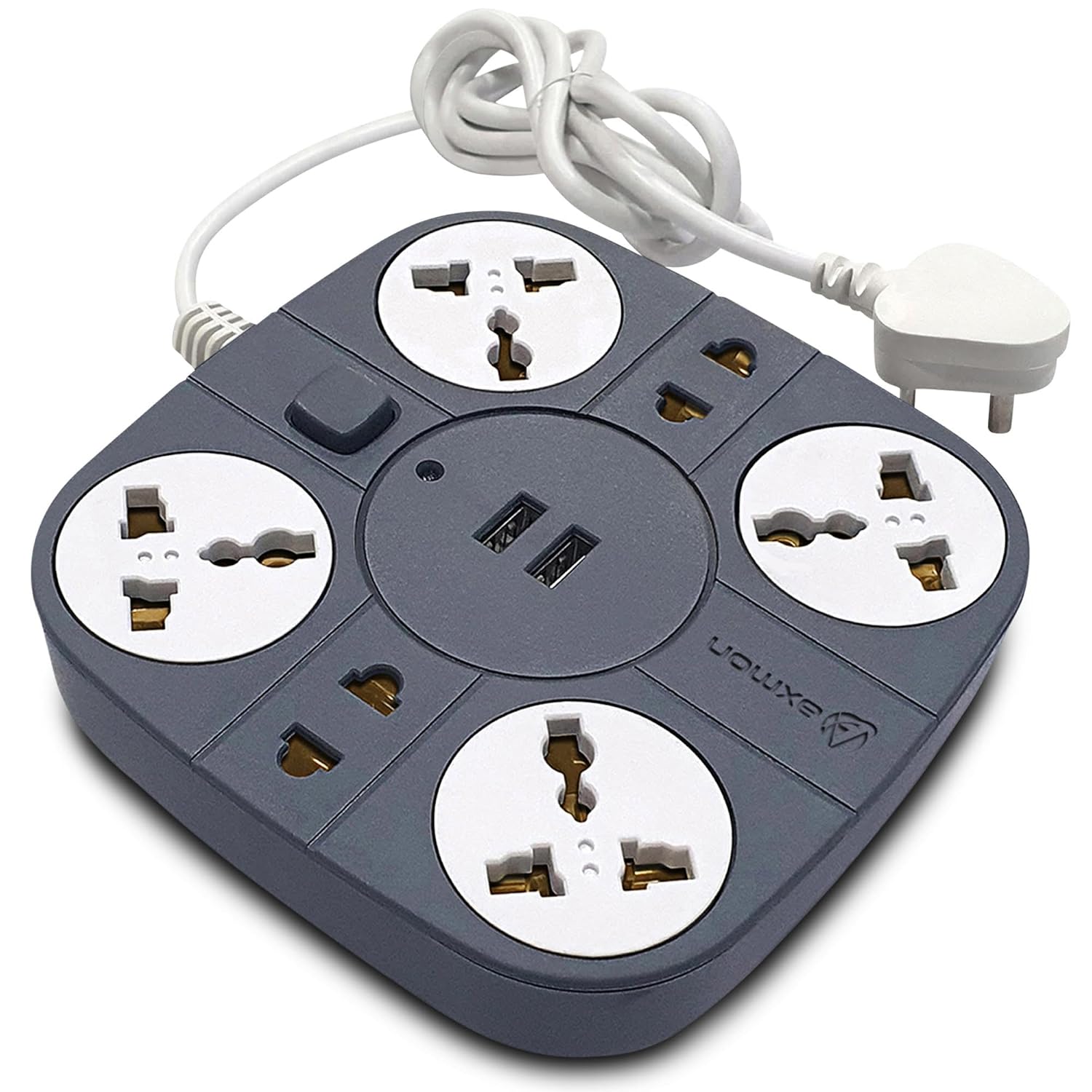 Axmon® Extension Cord with USB,Extension Board with USB,ABS Body with 2 USB Ports 10 Amp Heavy Duty Multiplug Extension Box, Spike Gaurd,Surge Protector 1.9 Meter Cord for Home Office [Dark Grey]