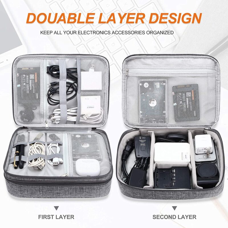 House of Quirk Electronics Accessories Organizer Bag, Universal Carry Travel Gadget Bag for Cables, Plug and More, Perfect Size Fits for Pad Phone Charger Hard Disk – GREY (polyester, pack of 1)
