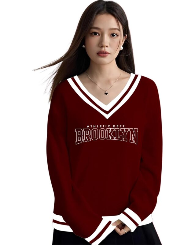 AUSK Women Tshirt || Full Sleeve Printed V Neck Regular Fit T-Shirt for Womens