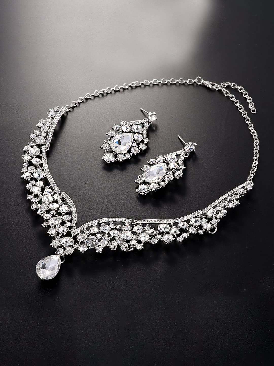 Yellow Chimes Jewellery Set for Women and Girls Fashion White Crystal Jewellery Set for Women | Silver Toned Crystal Choker Necklace Set | Birthday Gift for Girls & Women
