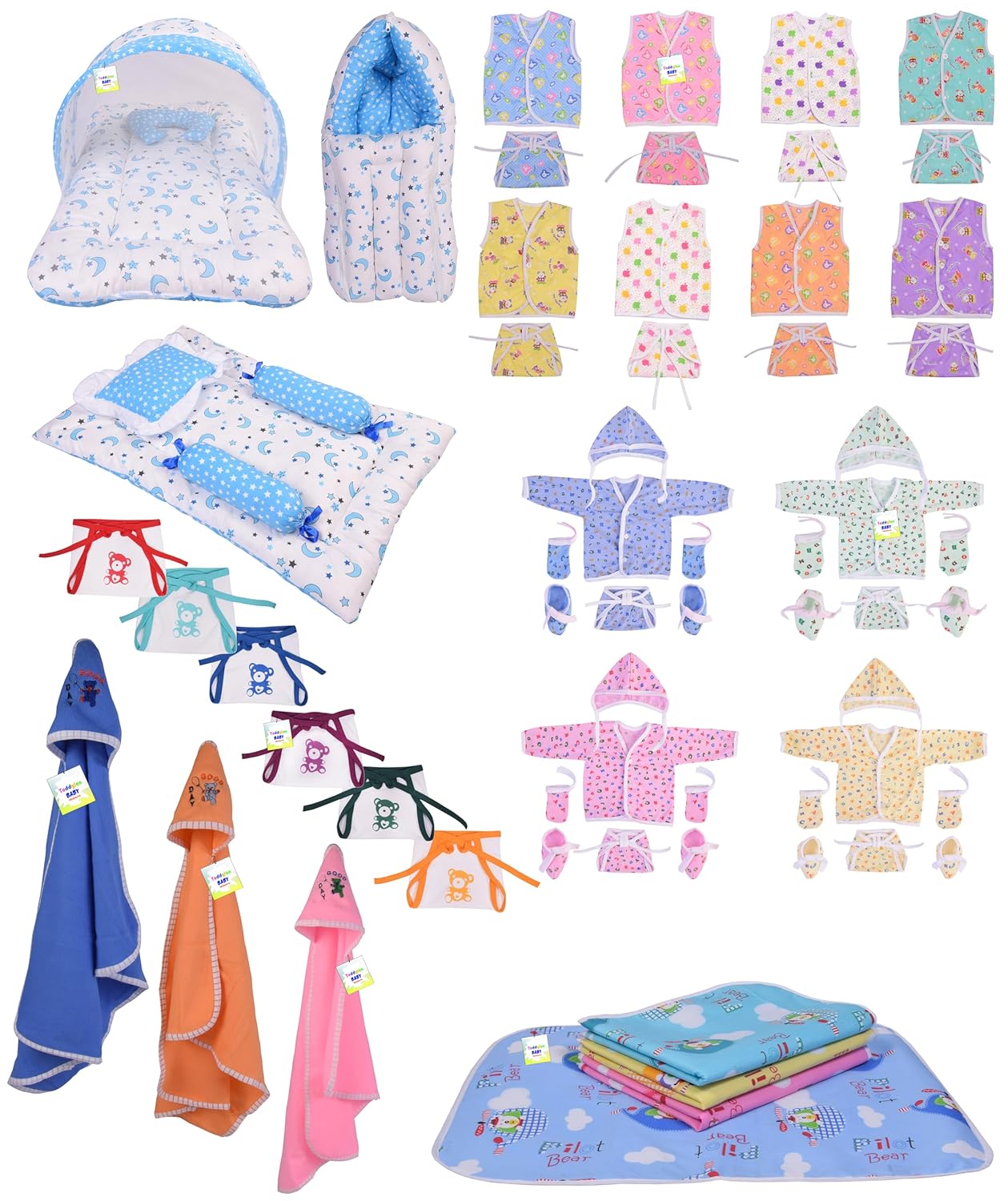 Kwitchy 56 in 1 New Born Baby Complete Daily Items Combo | Newborn Kit | Infants Products | Baby Gift | New Born Essentials (0-6 Months) Blue Moon