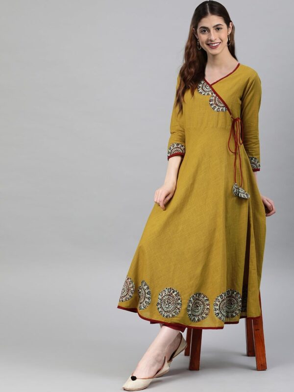 Yash Gallery Women’s Cotton Slub Patch Work Angrakha Kurta for Women (165YK251MUSTRAD_Yellow_XXXX-Large)