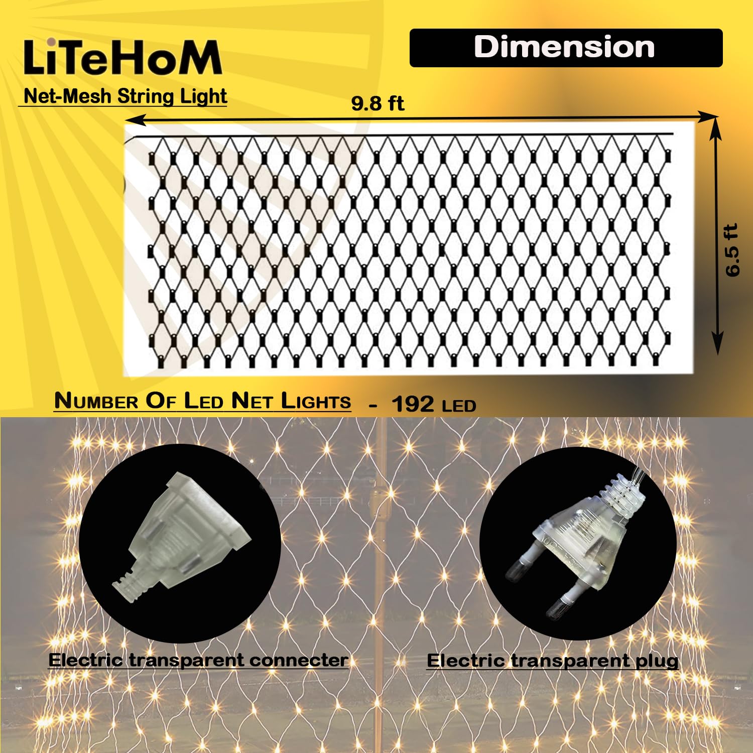 XERGY Plastic 192 LED String Light 2 X 2 Meter Net Mesh Light Fishing Net Lights for Wedding Party Home Garden Lawn Bushes Colorful Light Decorative Light Indoor Outdoor Decor (Warm White)