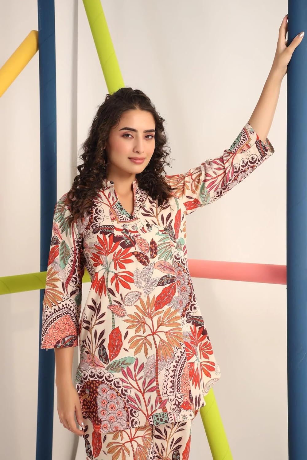 KLOSIA Viscose Women Kurta Set For Women|Co-Ords Set|Kurta Pant Set|Coordinate Set|Summer Suit|Printed Short Kurti With Pant Set|