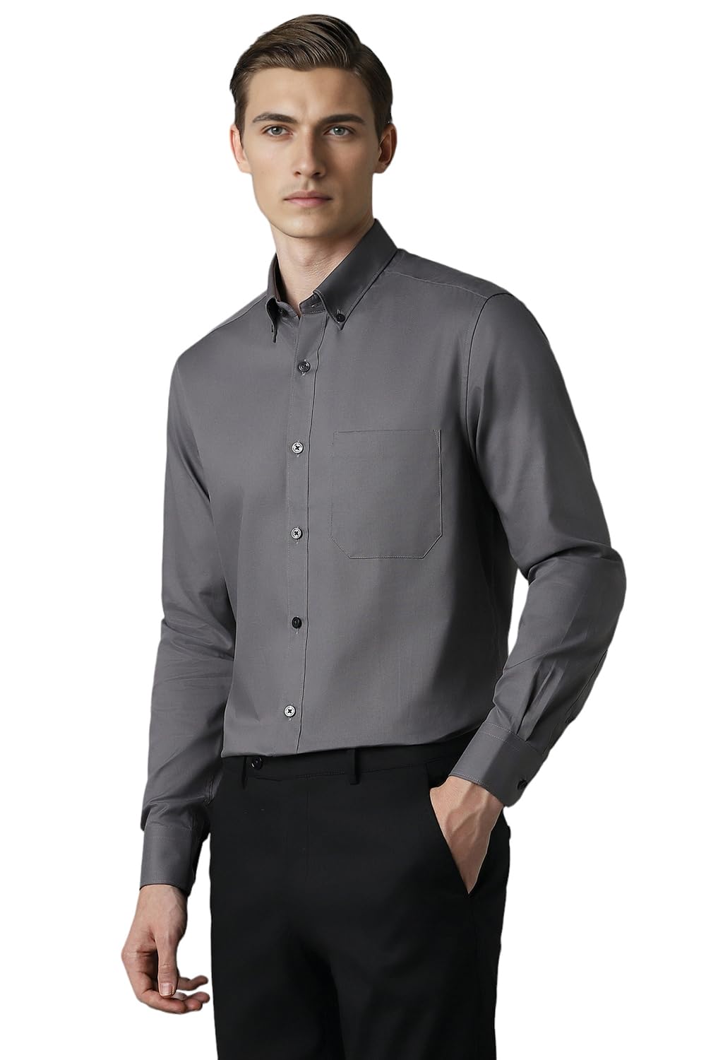 Louis Philippe Regular Fit Solid All Day Comfort Cotton Effortless Ironing Formal Shirt