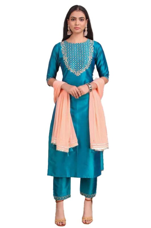 LookMark Women Art Silk Kurta and Pant Set with Dupatta
