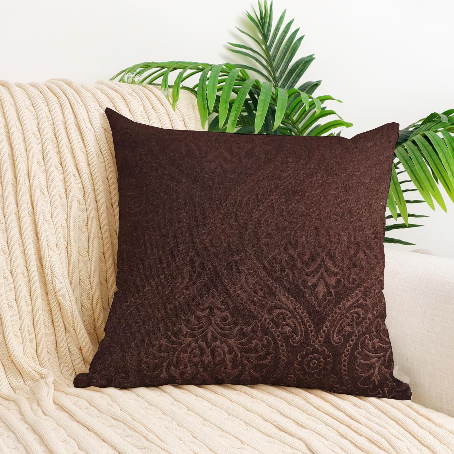 IVAZA Velvet Embossed Fabric Decorative Reversible Cushion Cover 12 x12 Inch – Set of 1, Soft Solid Damask Square Throw Pillow Covers for Sofa, Living Room or Home Decor – 30×30 cm Coffee