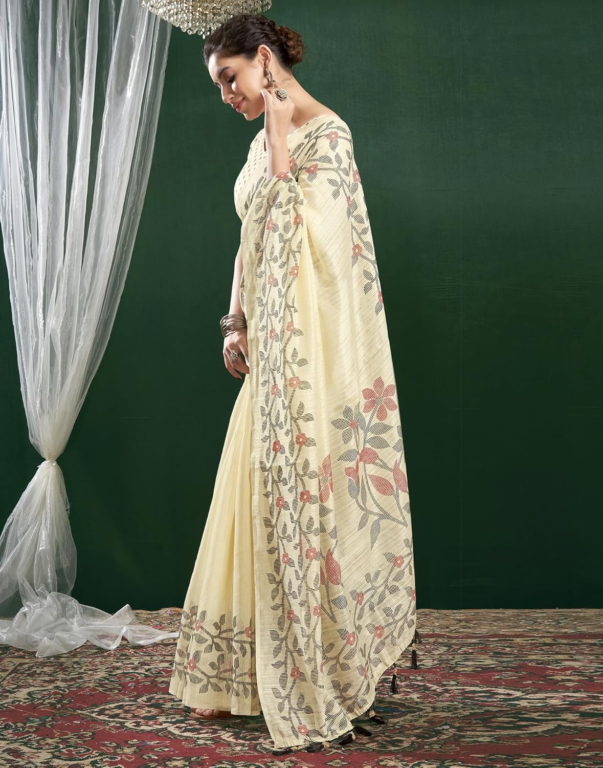SIRIL Women’s Cotton Blend Floral Printed Woven Saree With Unstitched Blouse Piece