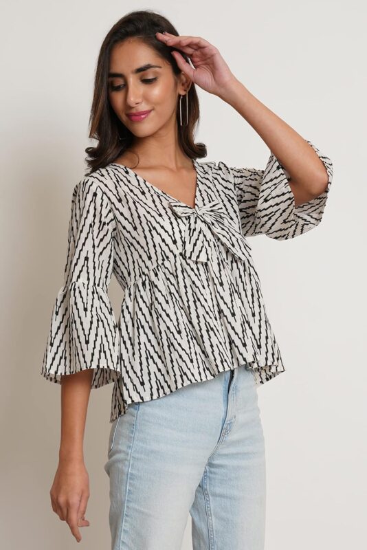COTLAND Fashions Jaipuri Cotton Printed Peplum Kimono Sleeves Top for Women