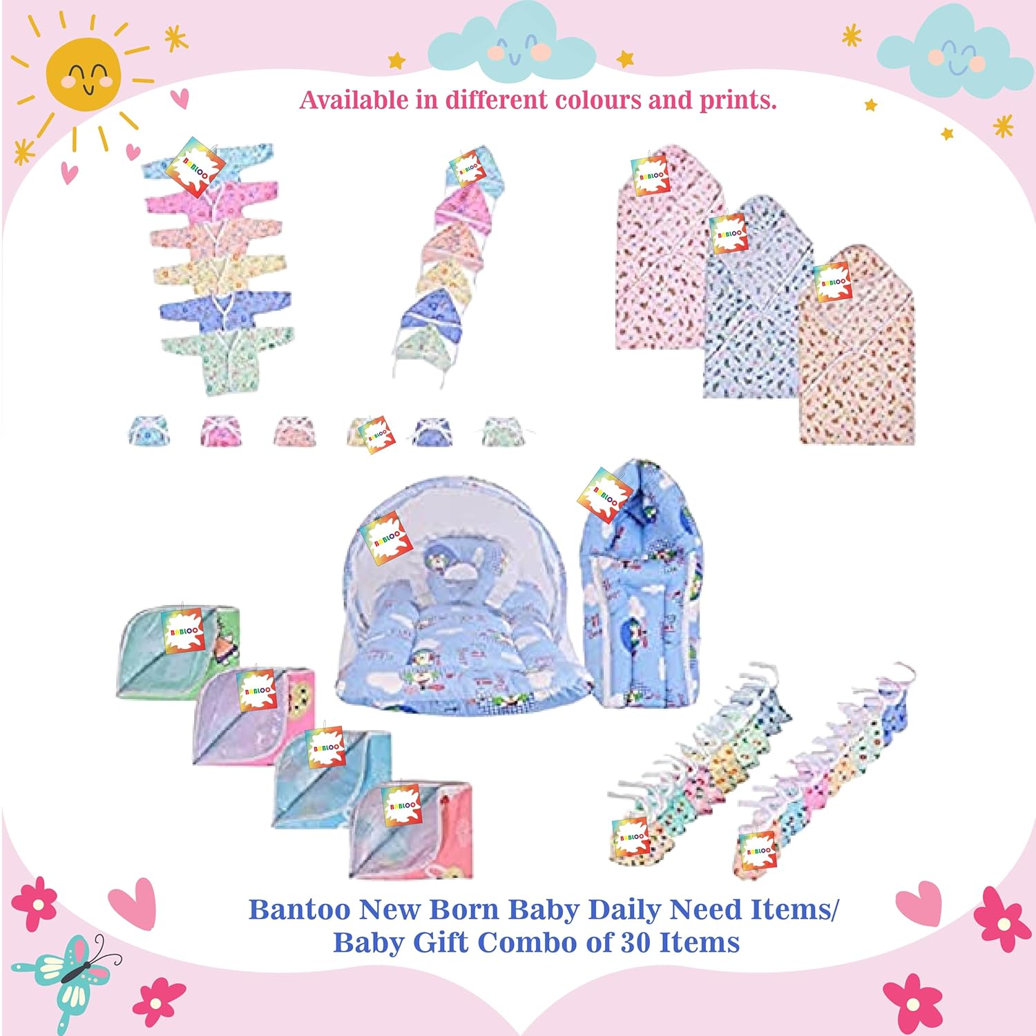Babloo 33 in 1 Baby Products All New Born Complete Daily Items | Gift Packs | Combos | Essentials Items | Hospital Kit | Baby Bed | Clothing Set (Multicolor, 0-6 Months)
