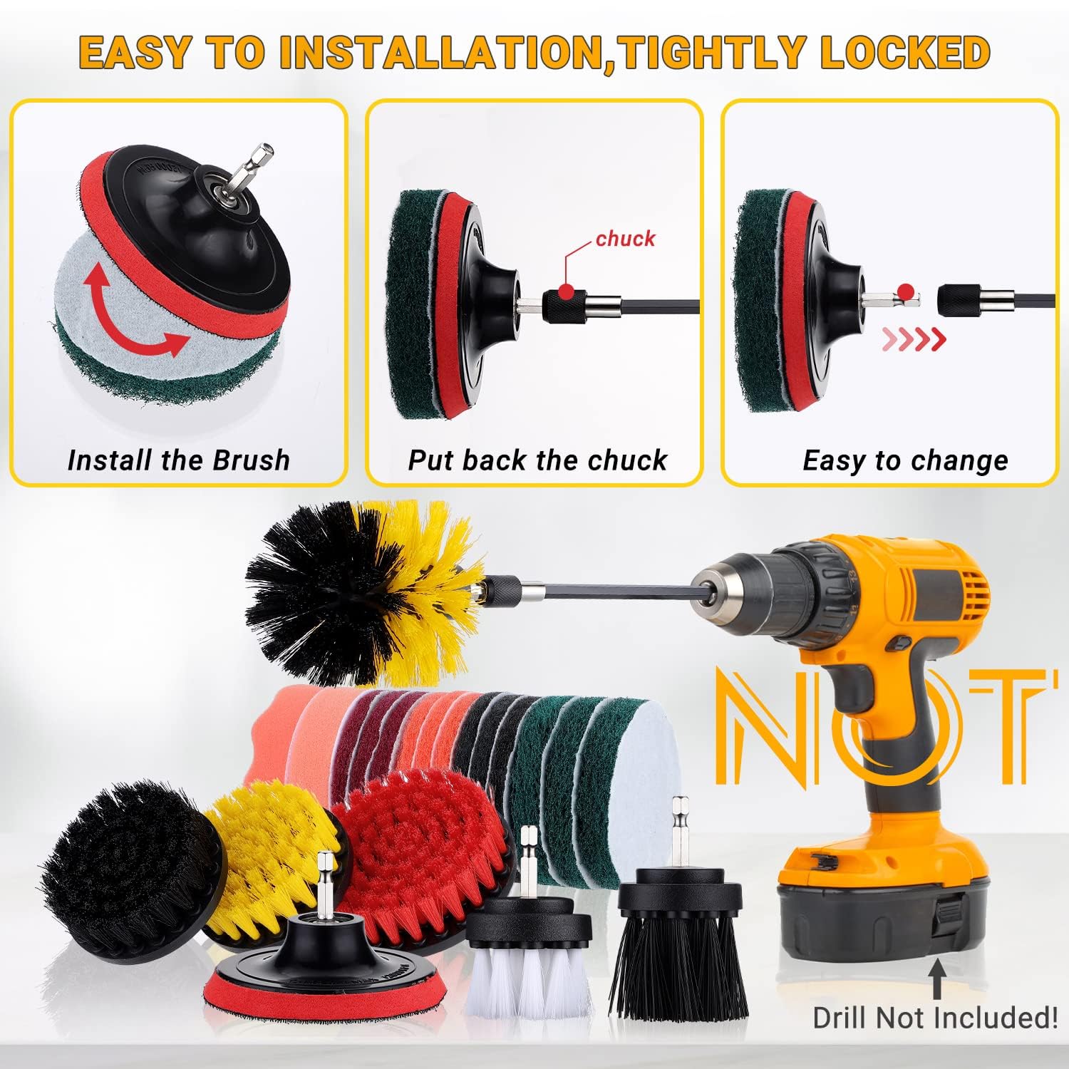 Firelex 30PCS Drill Power Brush Attachment Set, Tile Scrubbing Pads Cleaning Set, Sponge Scrubber Brush Multifunctional Power Scrubber Brush Cleaning Kit for Bathroom