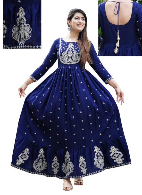 GoSriKi Women’s Rayon Blend Anarkali Solid Kurta with Pant & Dupatta