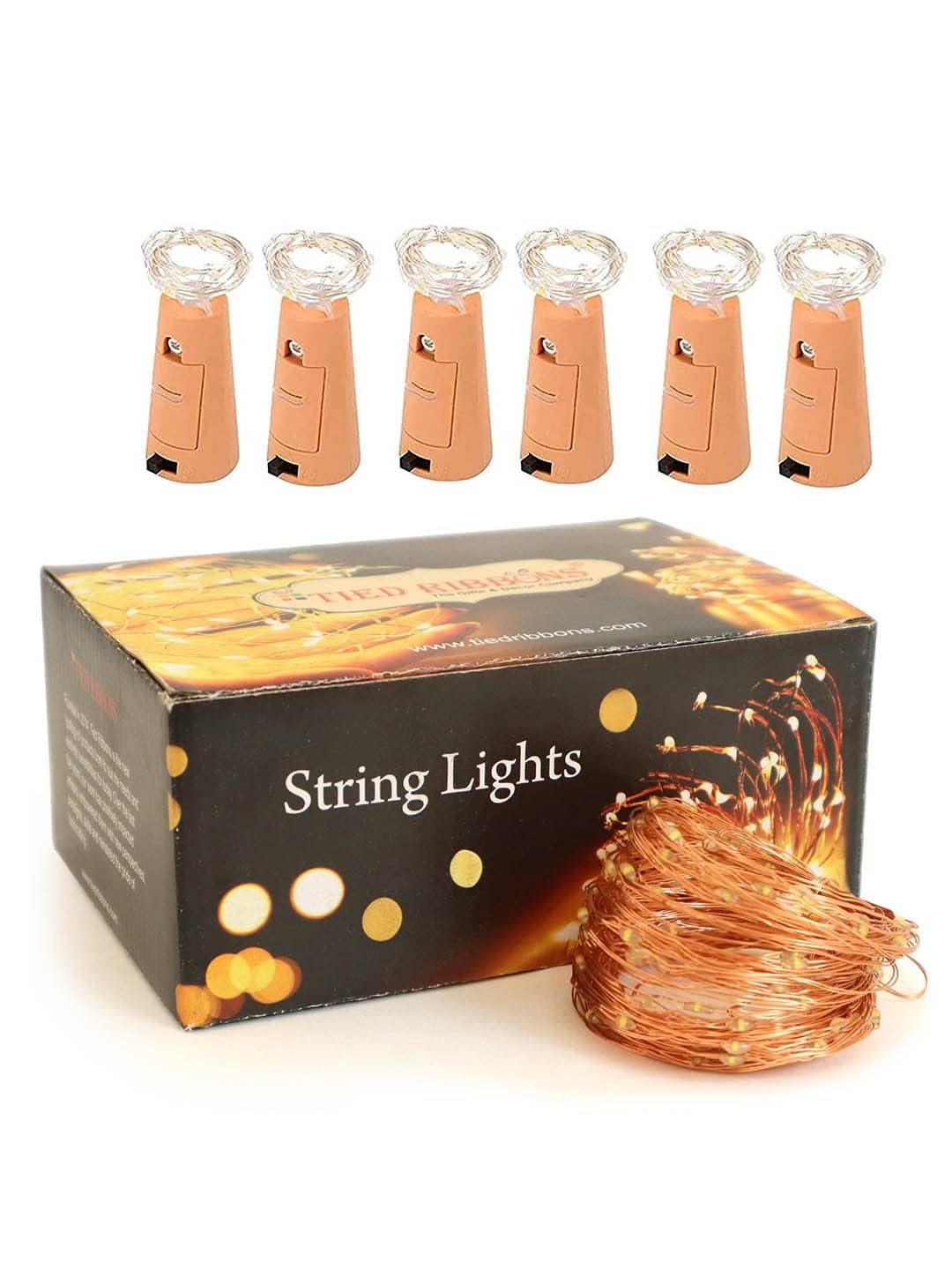 TIED RIBBONS Pack of 6 Wine Bottle Cork Copper Wire String Lights (2 Meter 20 LED in Each) – Lights for Home Decoration