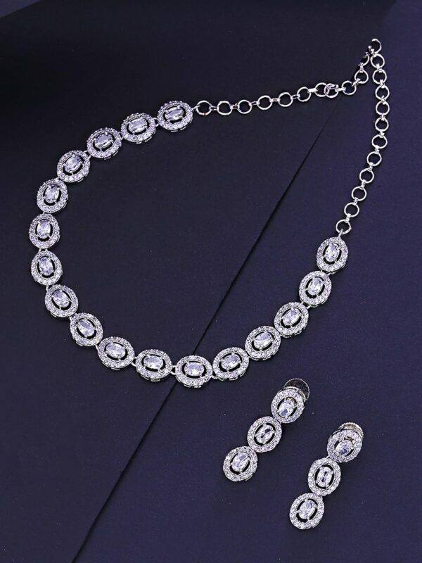 Yellow Chimes Traditional American Diamond Rhodium Rose Gold Plated AD Necklace Jewellery Set for Women
