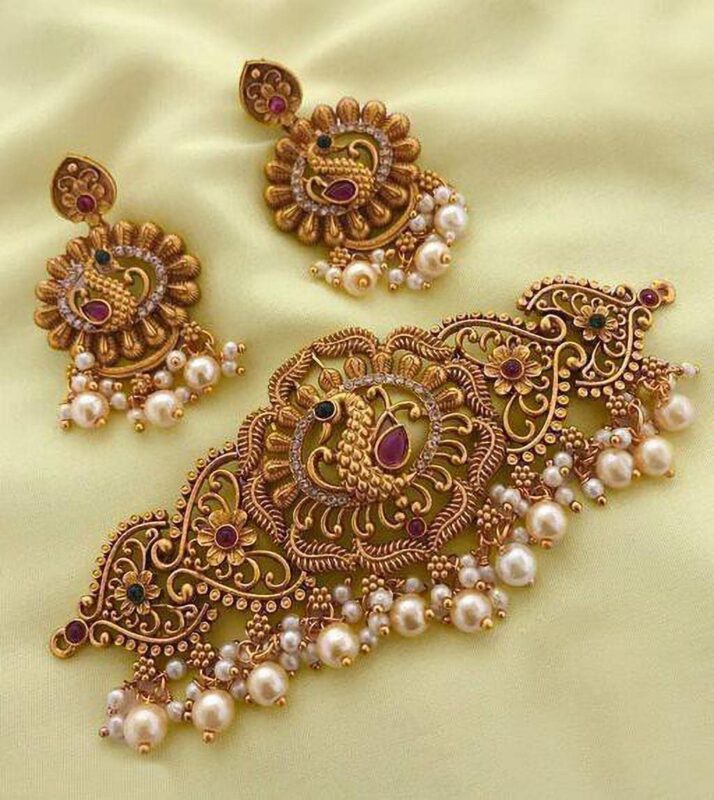 YouBella Alloy Brass Necklace Earrings Set for Women