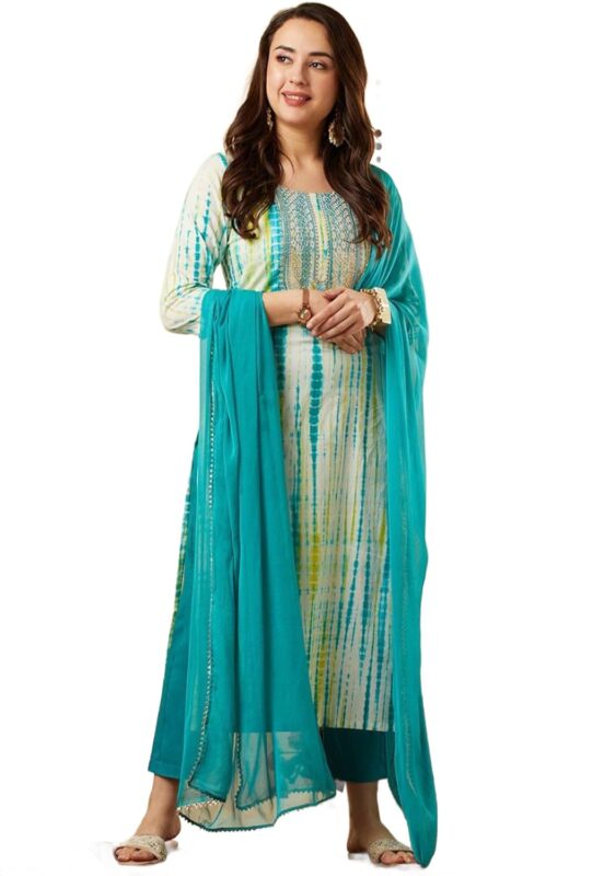Ethnic Villa Women Shibori Printed Straight Kurta and Pant Set With Dupatta