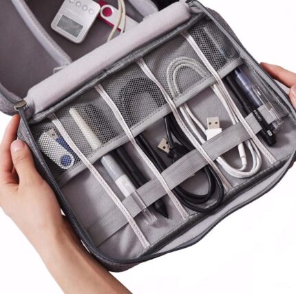Price: (as of – Details) Product Description Electronic Bag Travel Cable Accessories Bag Waterproof Double Layer Electronics Organizer Portable Storage