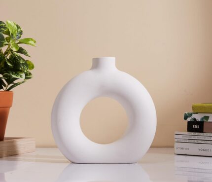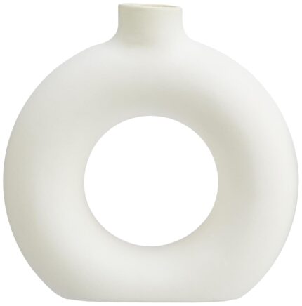 amazon basics Artisan Crafted Ceramic Donut Shaped Vase for Unique Home Decor Accent – Pack of 1, White