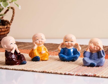 amazon basics Little Cute Maditating Baby Monk for Decoration (Pack of 4, Multi-Coloured)
