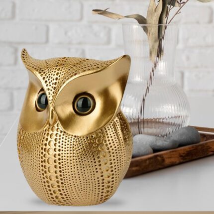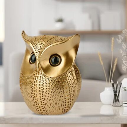 amazon basics Modern Classy Happy Owl Resin Art Figure Showpiece (Golden, 13 cm, 6.5 cm)