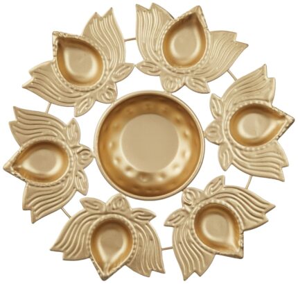 Amazon Brand – Solimo Diya Shape Iron Flower Decorative Urli for Home | Handcrafted | Golden