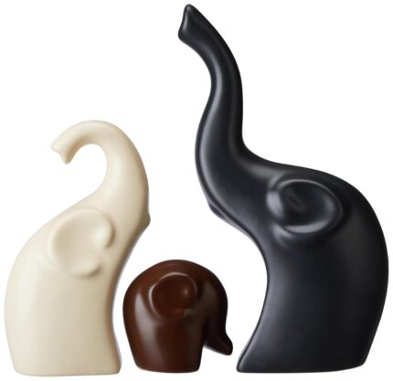 amazon basics Home Décor Elephant Family Matte Finish Ceramic Fantasy Figures(Set of 3 Piece,Multicolor)