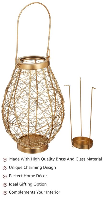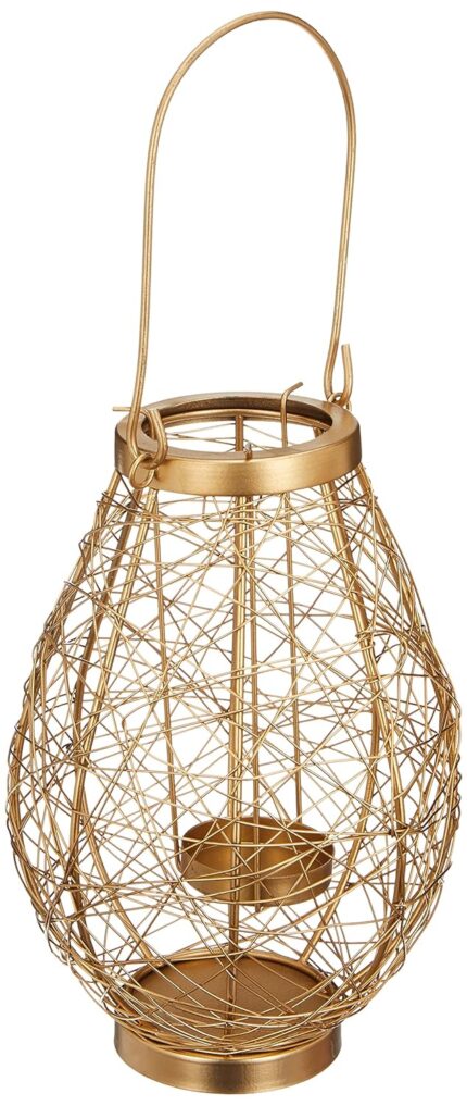 Amazon Brand – Solimo Bird Nest Lantern Tealight Candle Holder for Home Décor – Hanging Metal Candle Holder, Gold