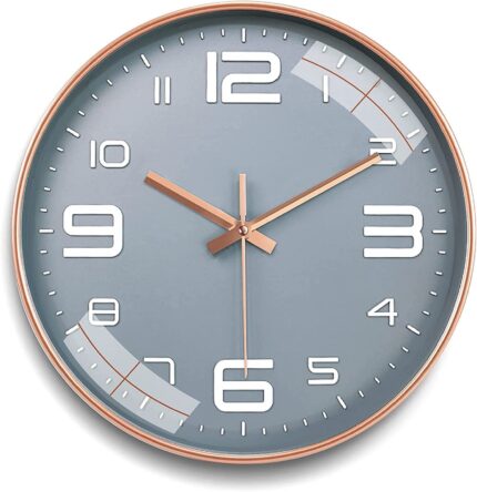 TEKCOOL Wall Clock 12″ Silent Quartz Decorative Latest Wall Clock Non-Ticking Classic Clock Battery Operated Round Easy to Read for Room/Home/Kitchen/Bedroom/Office/School – Analog, Plastic Grey Gold