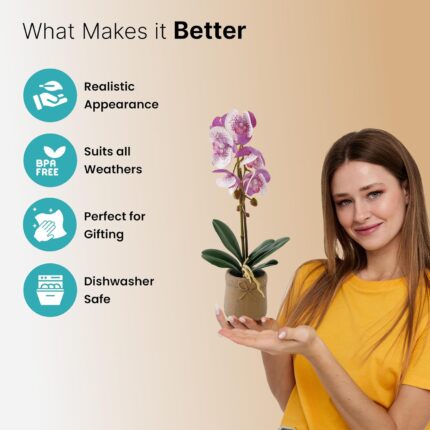 The Better Home Artificial Plants with Pot (44cm) for Home Decor| Aesthetic Room Decor Items for Bedroom | Show Pieces for Home Decor | Flower Pots for Home Decoration| Purple Orchid Flowers