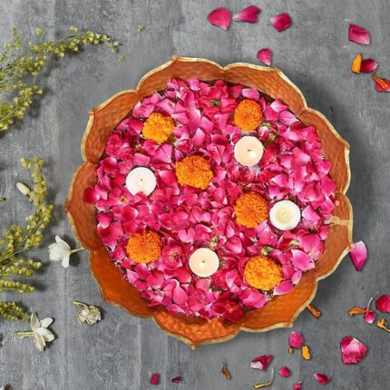 The Purple Tree Beautiful Handcrafted Lotus Urli Bowl for Diwali (Pack of 1, 30 cm) Decorative Bowl for Floating Flowers and Tea Light Candles Home, Tr