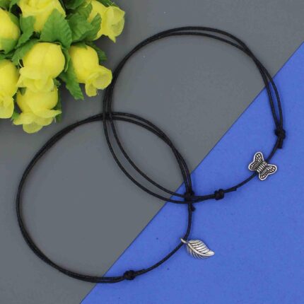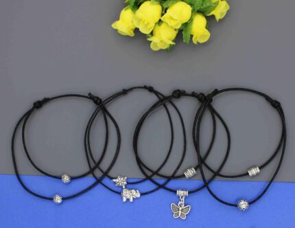 GURJARI JEWELLERS Adjustable Black Thread Anklet with Oxidised Hanging for Girls
