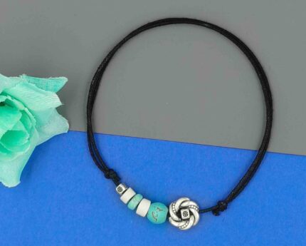 GURJARI JEWELLERS Black Thread with Turquoise,Evileye, Oxidised Beads Anklets for Girls/nazariya anklet