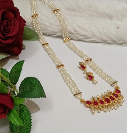 Gold Plated Long Pearl Set With Earrring/Maharashtrian Long Tanmani For Women & Girls-60B