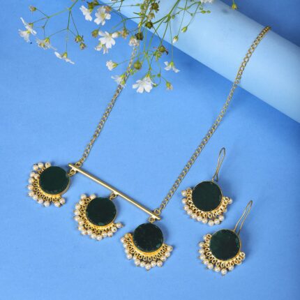 Gold Plated Designer Stone Chain and Earrings Set