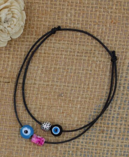 GURJARI JEWELLERS Adjustable Black Thread Anklet with Oxidised Beads for Girls/nazariya anklet
