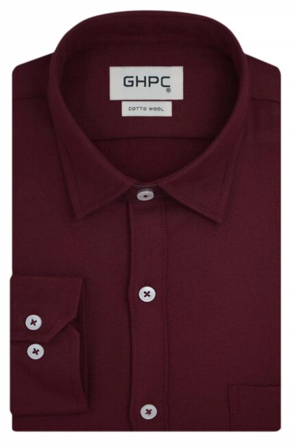 GHPC Cottswool Winter Wear Woolen Plain Solid Full Sleeves Regular Fit Formal Shirt for Men