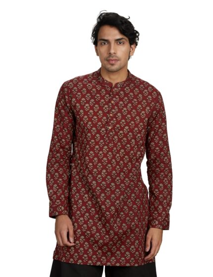 Amazon Brand – Symbol Men’s Cotton Printed Long Kurta (Regular Fit)