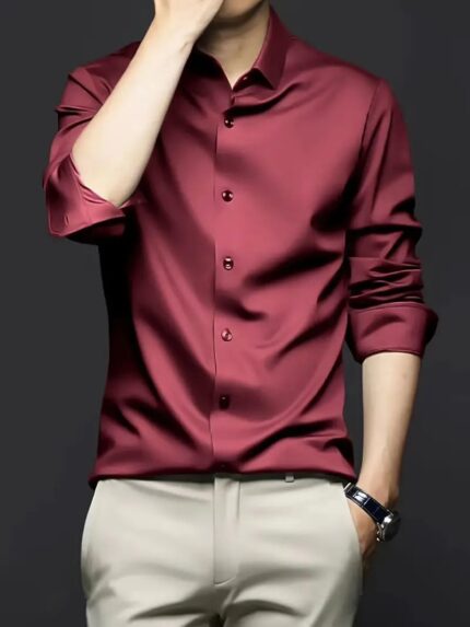 IndoPrimo Men’s Stylish Solid Satin Casual Shirt for Men Full Sleeve